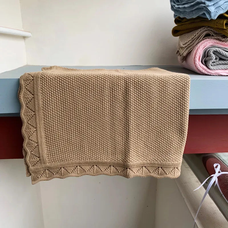 INS-Style Baby Knit Cotton Blanket – Soft Swaddle & Stroller Throw