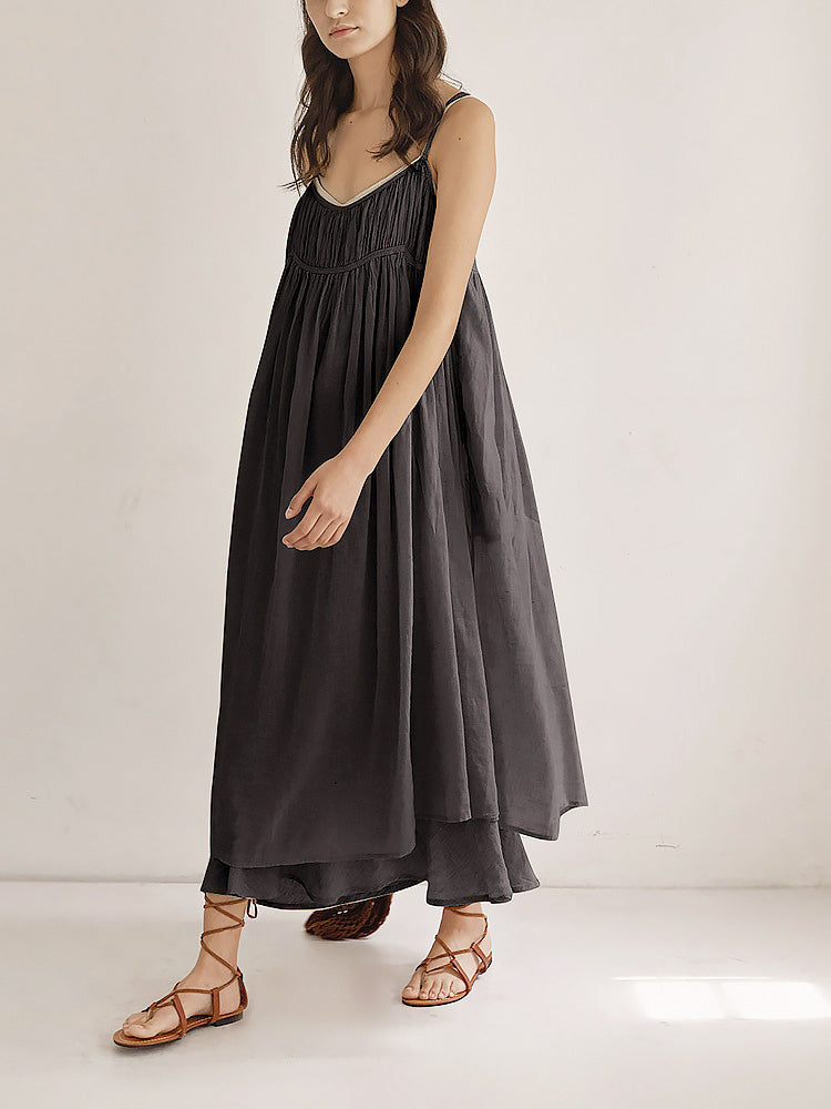 Backless Crinkle Maternity Dress – Relaxed Minimalist Summer Maxi Dress