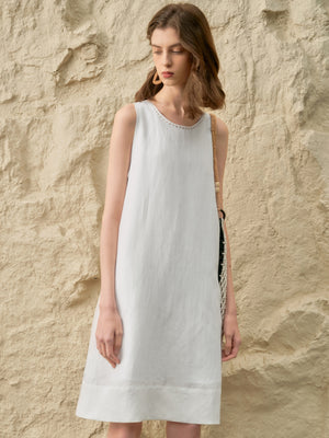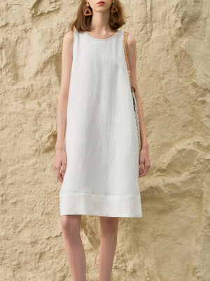Minimalism, refined. This Tencel-linen dress blends natural texture with quiet luxury. The handcrafted beaded trim speaks softly yet confidently — a detail for women who appreciate subtle sophistication. Effortless, breathable, and timeless — a summer staple you’ll reach for year after year. ✨