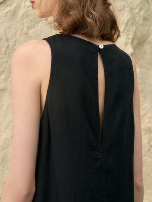 Hand-Beaded Tencel Linen A-Line Maternity Dress – Summer Sleeveless Midi