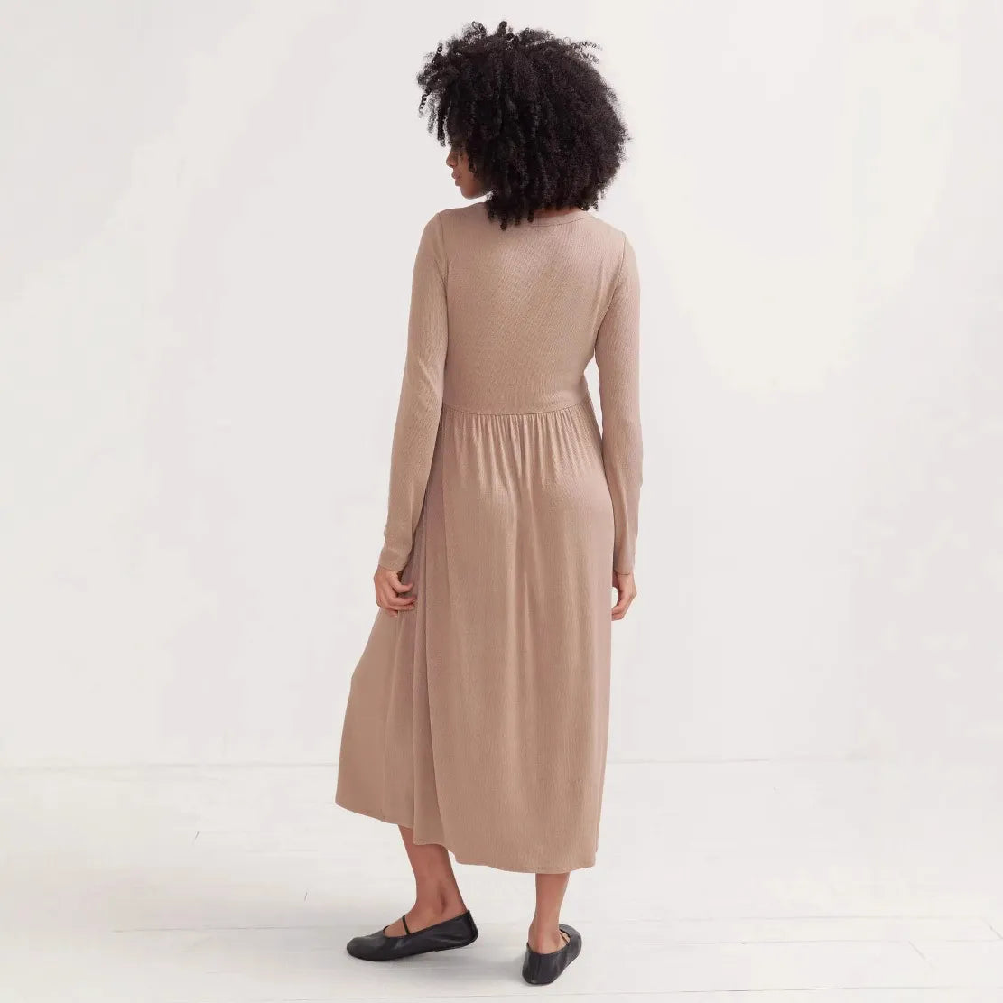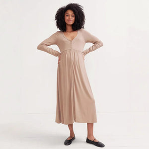 Maternity &Nursing V-Neck Long Sleeve Maxi Dress β High-Waist Fit