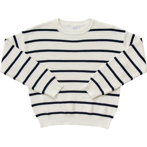 Upgrade your fashion game with Mebie Baby's Navy Stripe Adult Knit Sweater - the ultimate combination of coziness and fashion. Made from breathable. soft knit material. this sweater boasts striking navy and white stripes for a classic touch. Don't forget to snag the matching one for your little ones!
