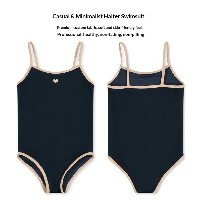 Girls’ Heart Embroidered One-Piece Swimsuit – Quick-Dry Cami Style