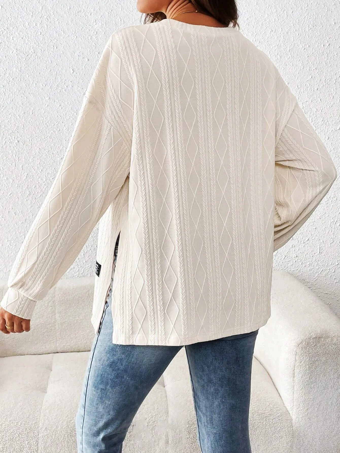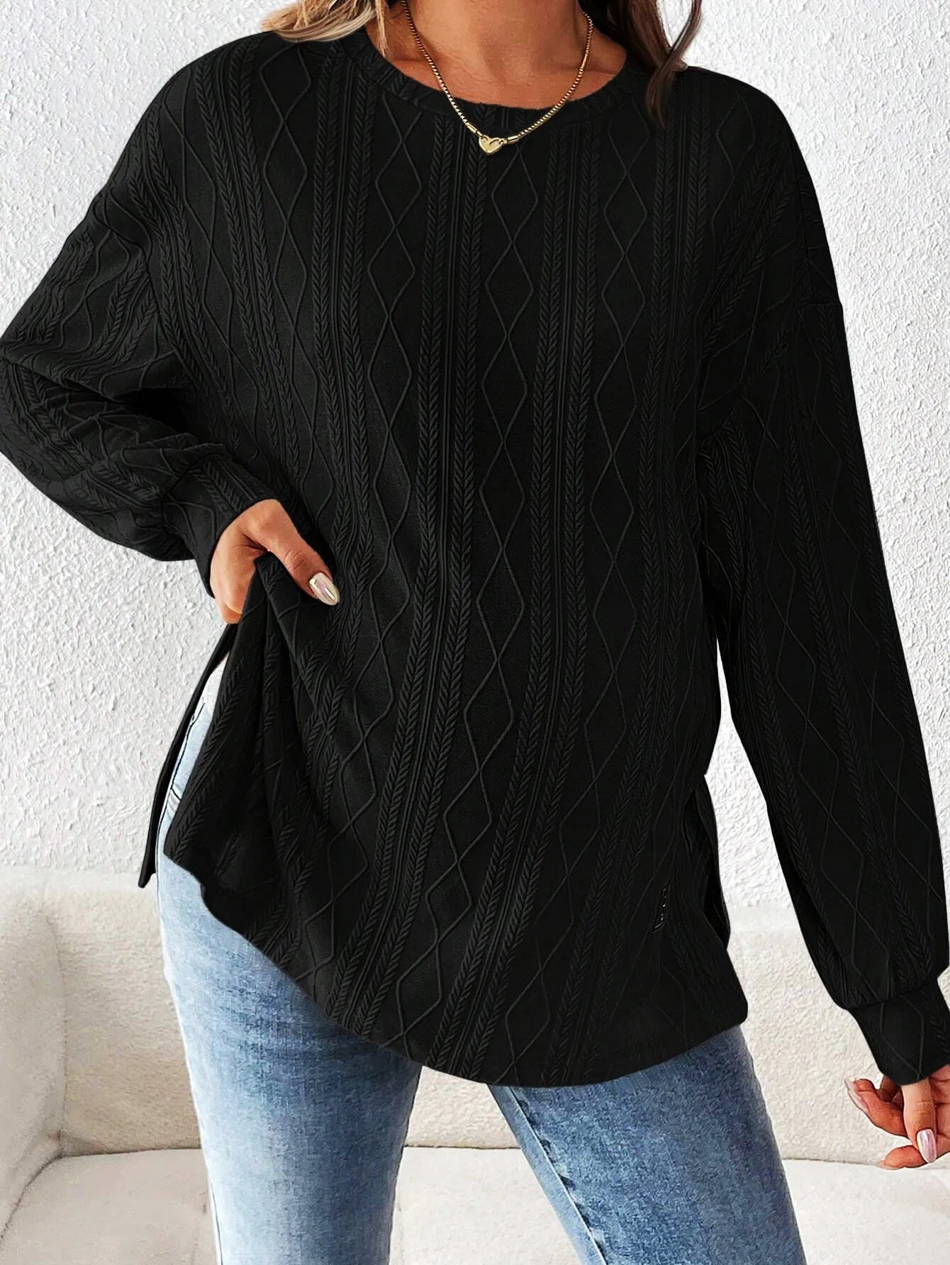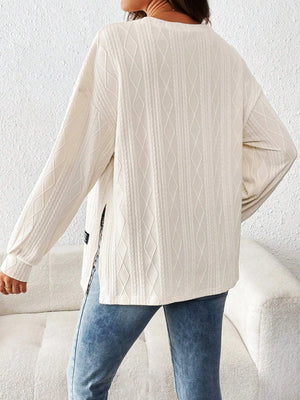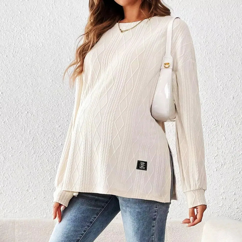 Maternity Long Sleeve Pullover Top – Diamond Textured Crewneck
