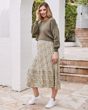 Sylvie Luxury Maternity Knitted Cropped Sweater In Olive