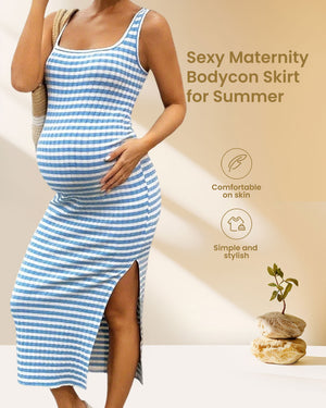 Designed for summer maternity style, this bodycon dress blends modern elegance with comfort. The square neckline and side slit offer subtle sophistication, while the soft, stretchy fabric accommodates a growing bump without compromising ease. Perfect for casual outings, brunch, or summer events, itβs a versatile piece that keeps you feeling confident and comfortable.