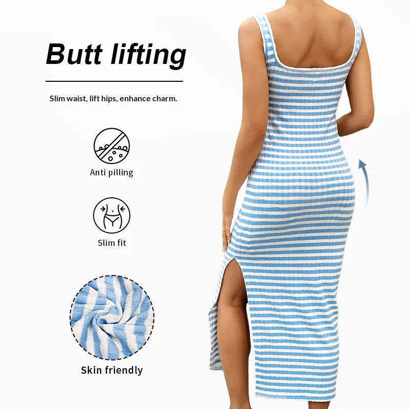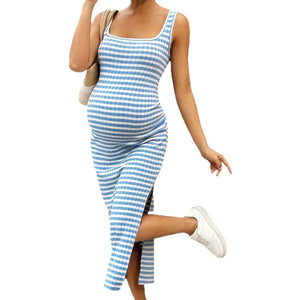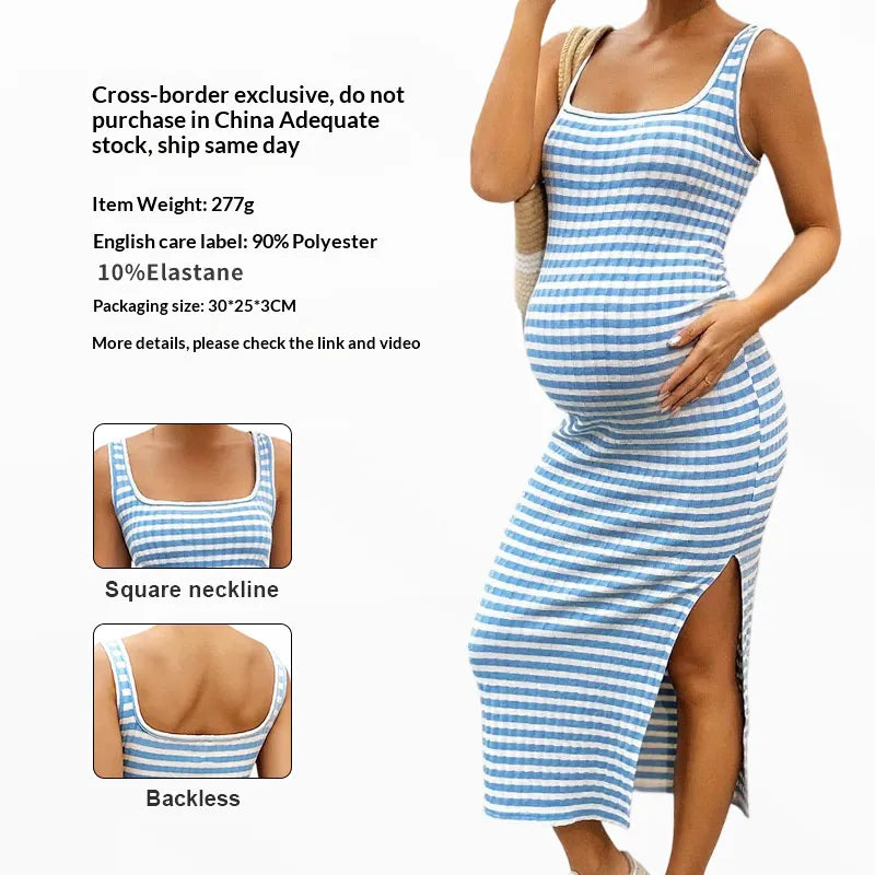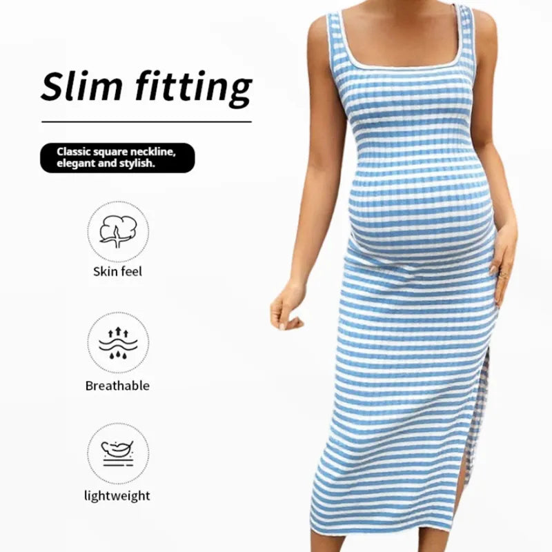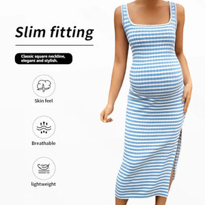 Summer Maternity & Nursing Bodycon Dress β Square Neck Striped Sleeveless
